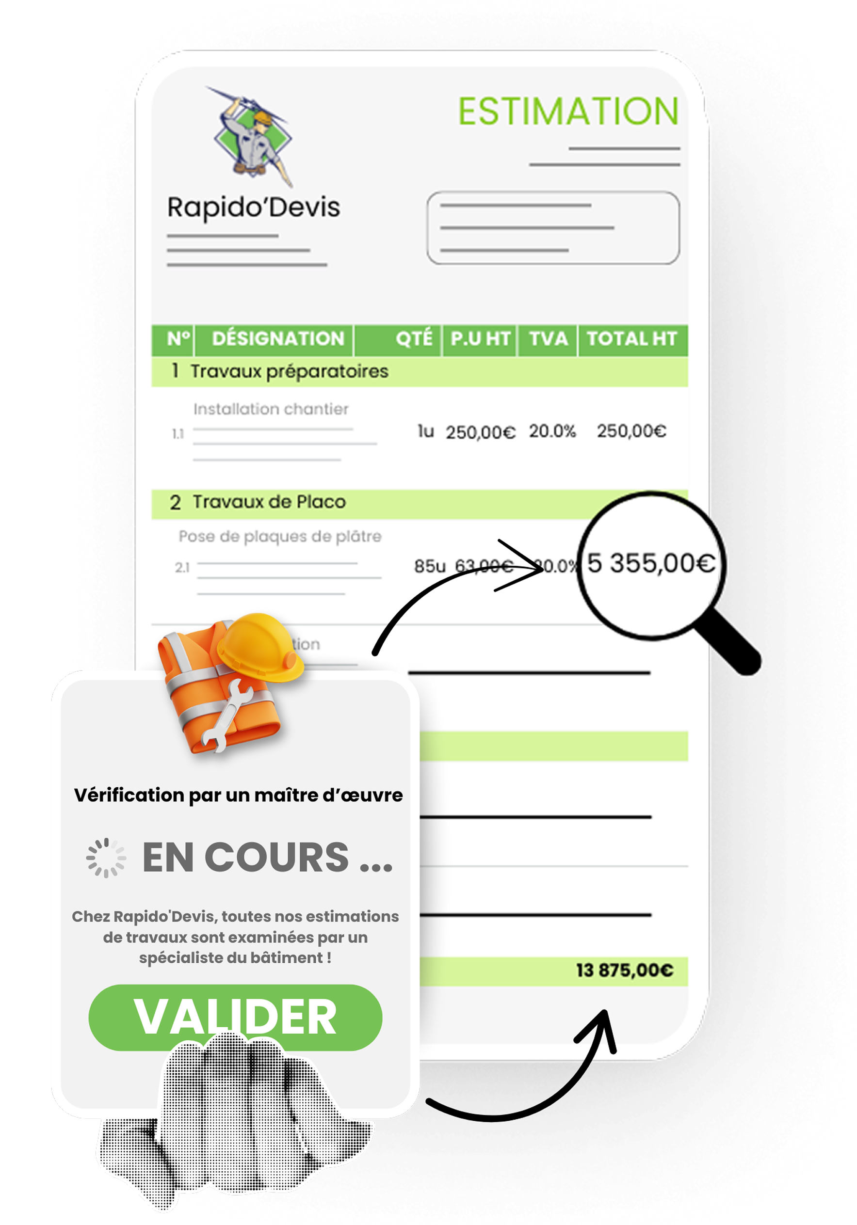 Un maître d'œuvre certifié vérifie, ajuste et valide chaque poste de votre estimation pour en garantir la justesse.
