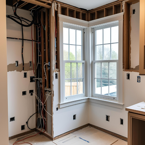 L’électricité, lorsqu’elle est entièrement à reprendre, peut coûter entre 6 000 et 10 000 €. La plomberie, surtout en cas de déplacement des points d’eau ou de création de salle de bain, tourne autour de 5 000 à 8 000 €. Si vous devez changer le système de chauffage (pompe à chaleur, chaudière performante), la facture monte facilement à 10 000 € et plus. Côté menuiseries, remplacer huit fenêtres standards en double vitrage revient souvent entre 6 000 et 9 000 €. Une salle de bain complète, avec douche, meuble, carrelage et plomberie, représente en moyenne 7 000 à 9 000 €. Et une cuisine équipée, en fonction de la gamme et de la complexité, peut dépasser les 10 000 €.