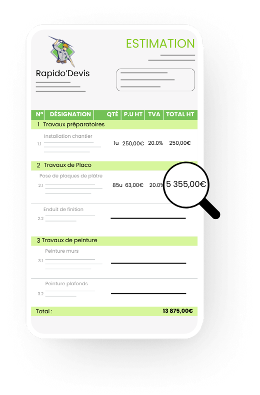 Que vous soyez professionnel ou particulier, Rapido’Devis simplifie le chiffrage de vos travaux. Notre approche unique s’ajuste à la taille et à la nature de votre projet, avec des formules conçues pour répondre à chaque niveau de besoin — du simple chiffrage au suivi complet.